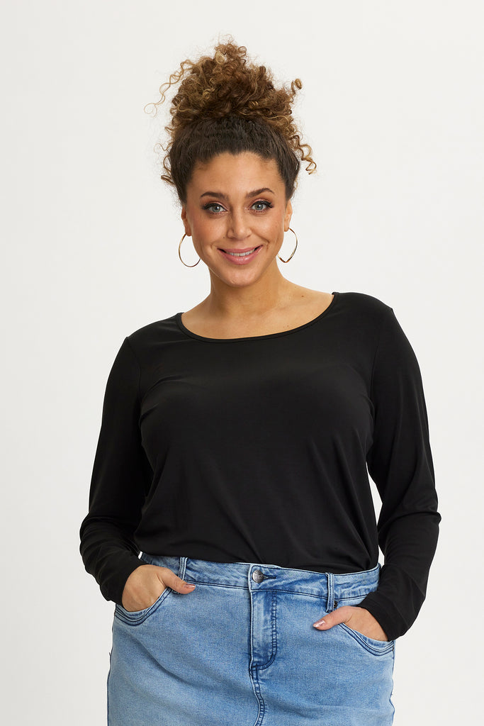 Paita joka tilanteeseen. Liukkaan materiaalin ansiosta toimii hyvin myös aluspaitana. Pyöreä pääntie.